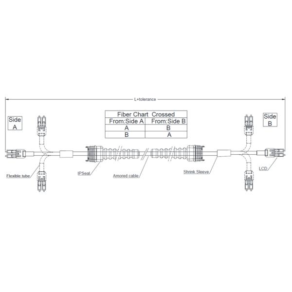 FUFBA MM OD Fiber LC OD-LC OD is 30m, used in RFM/RRH applications, the optical cable is OM2, flexible ended Uni boot NSN, compatible with Nokia 473303A. At both sides, LC duplex connectors adopt with flexible tube, it can be bended to any degree between -100° to +100°,and protected by IP seal boot.